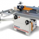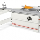 Kombinierte Säge-Fräsmaschine in Profi-Ausführung mit schwenkbarem Sägeblatt, schwenkbarer Frässpindel und Format-Schiebeschlitten.